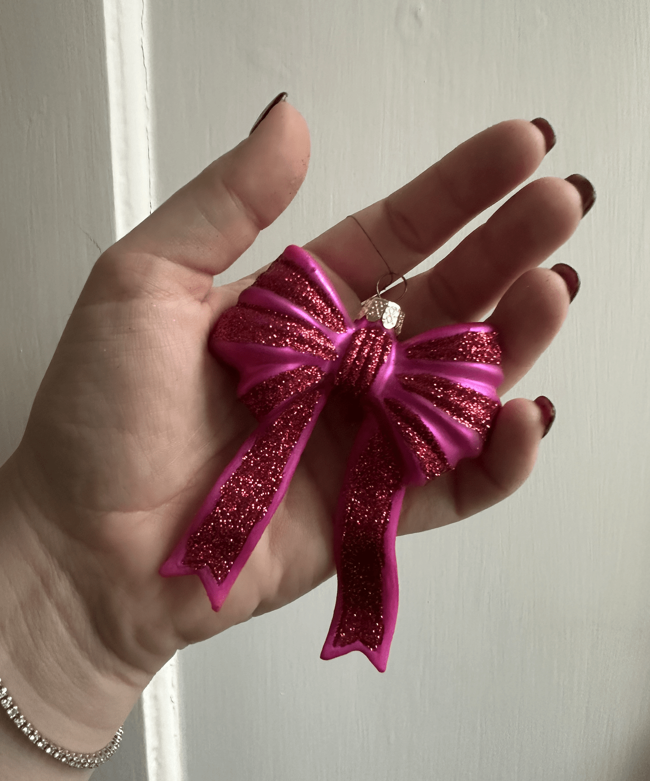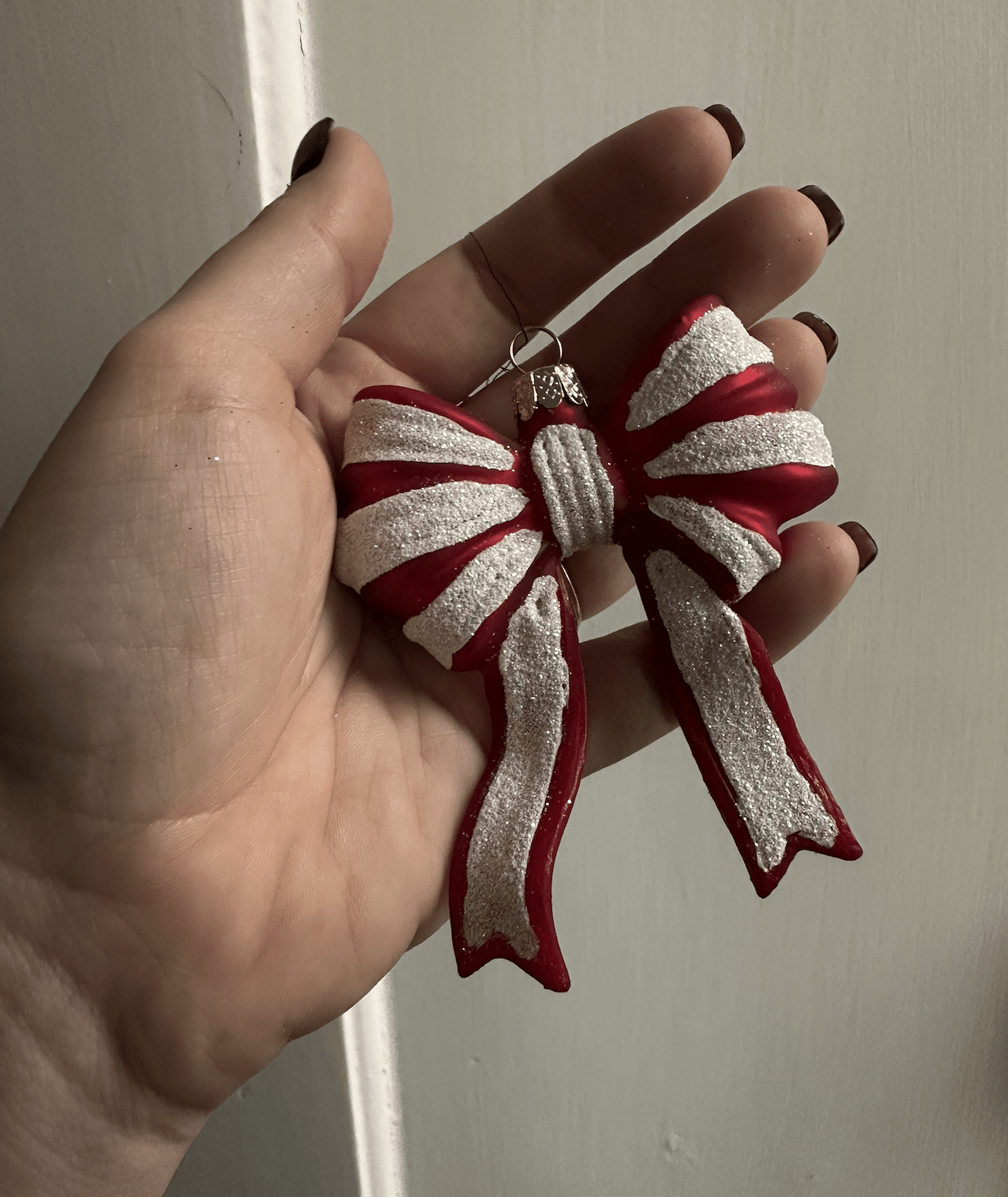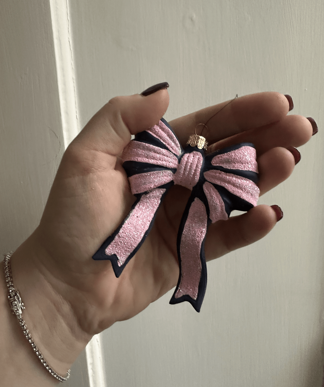 Mundblæst og håndmalet sløjfe, i glas og resin