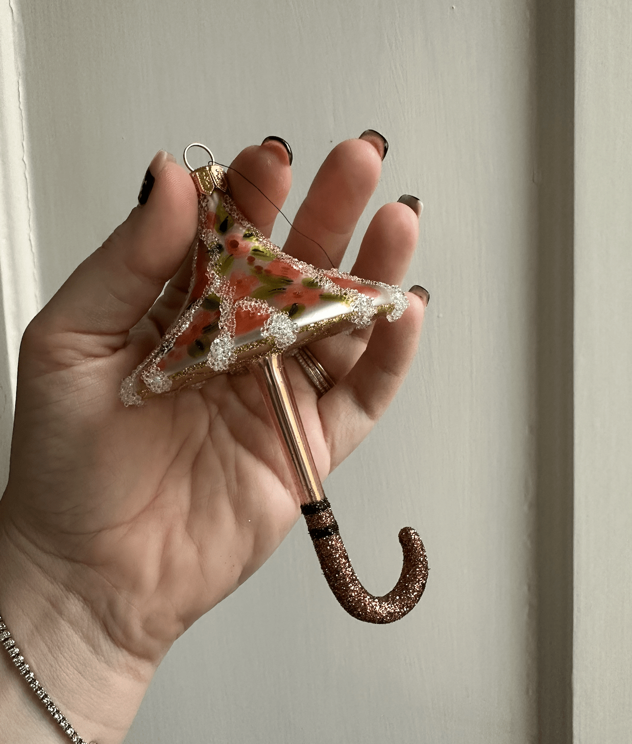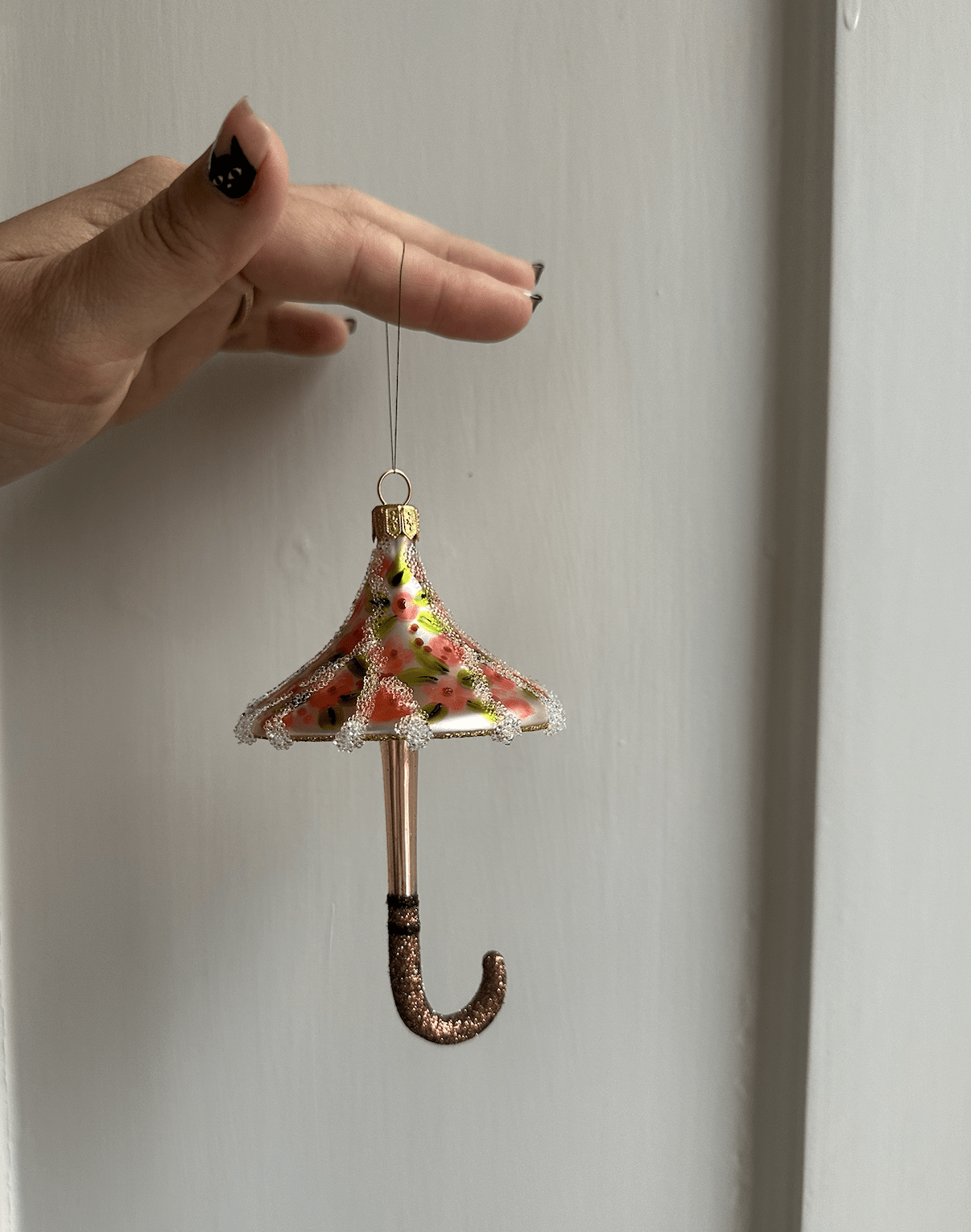 Mundblæst og håndmalet parasol, i glas