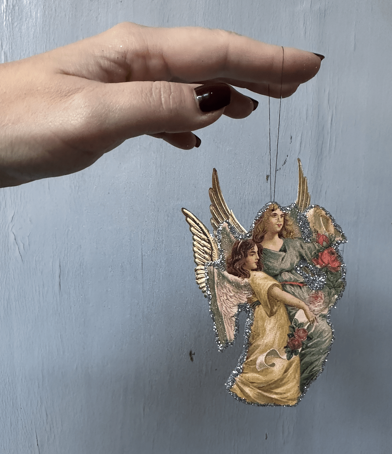 Papirpynt med Dredsen papir, vintage glansbillede og glitter