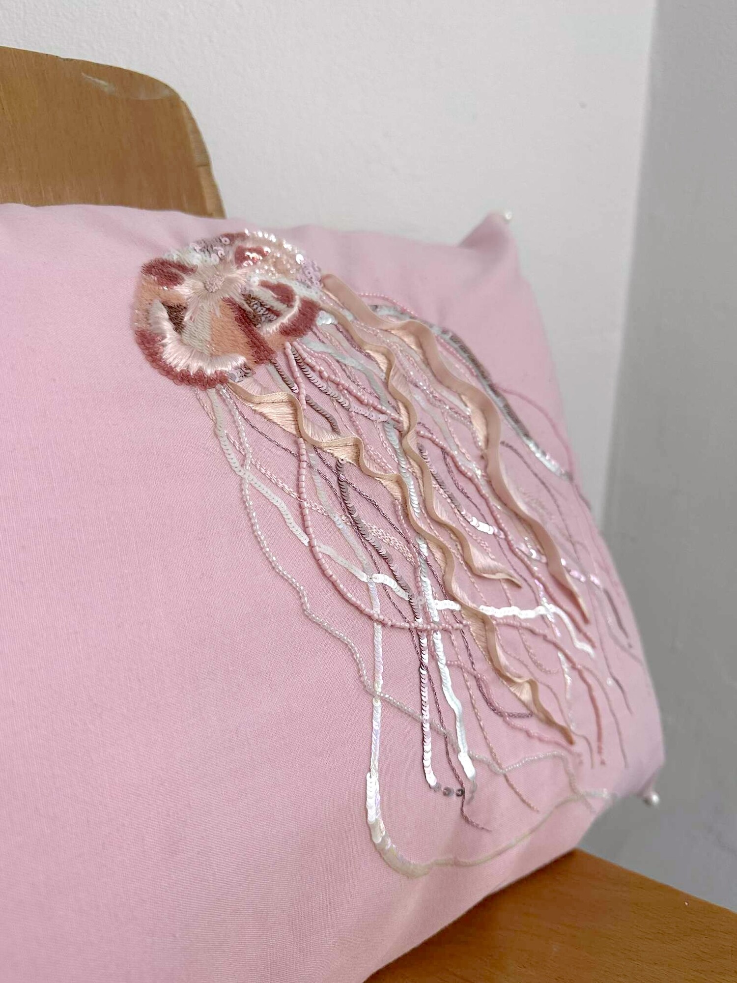 Håndbroderet pude i rêve de renards studie i København
